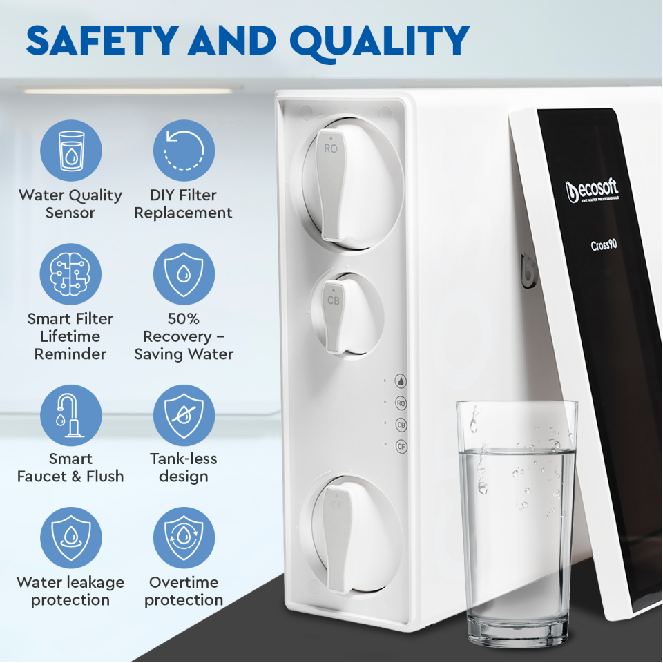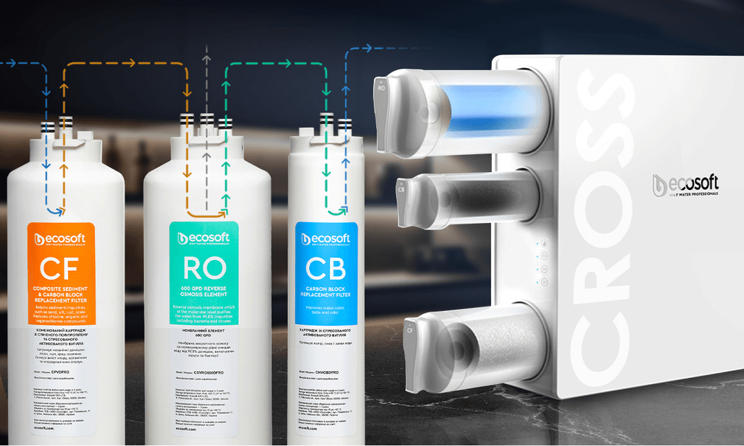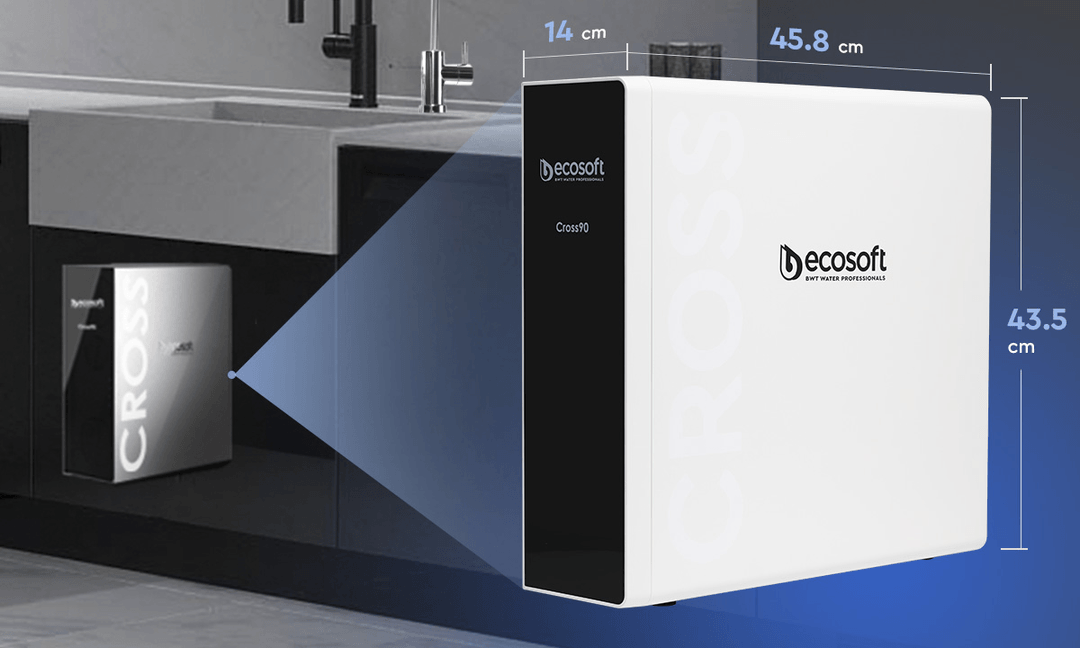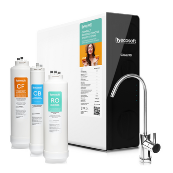Η μονάδα αντίστροφης όσμωσης CROSS90 της Ecosoft προσφέρει υψηλής ποιότητας καθαρό νερό, ιδανικό για οικιακή χρήση.