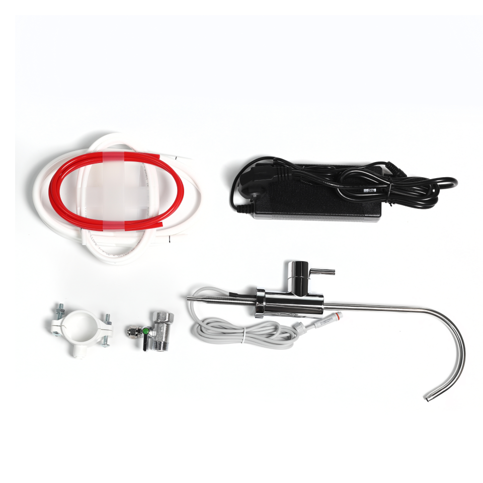 Πρόκειται για μία αξιόπιστη μονάδα αντίστροφης όσμωσης, τοποθετήσιμη κάτω από τον πάγκο της κουζίνας, με απευθείας ροή που δεν απαιτεί την εγκατάσταση δεξαμενής συλλογής. Η μονάδα περιλαμβάνει αντλία πίεσης για καλύτερη λειτουργία σε χαμηλές πιέσεις εισερχόμενου νερού και διατίθεται με φωτιζόμενη βρύση καθαρού νερού για εύκολη χρήση.